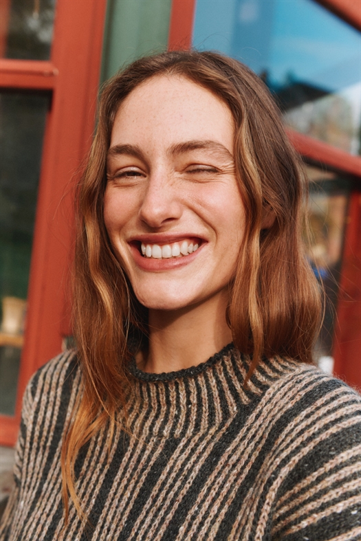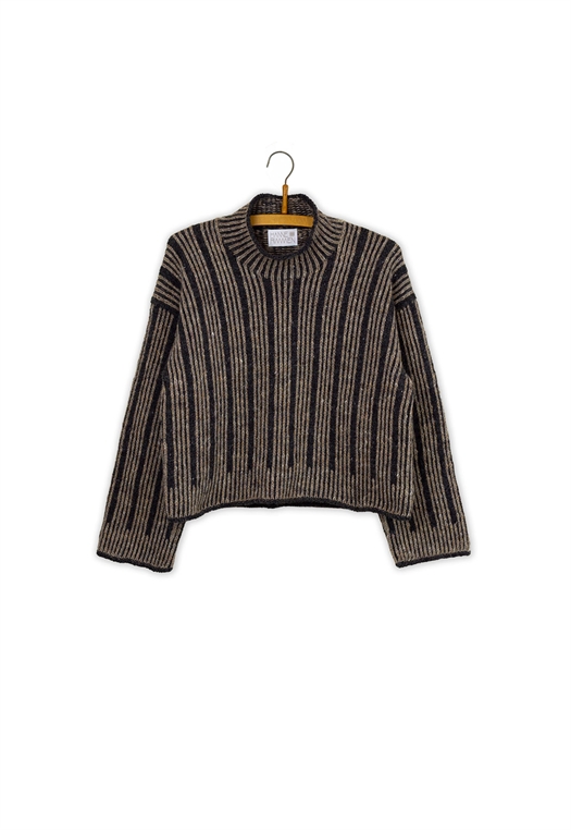 De karakteristiske lodrette linjer i Edda Sweateren har udgangspunkt i Marianne Isagers design Krydser fra 1980’erne og er designet med stor respekt for det originale og ikoniske udtryk.