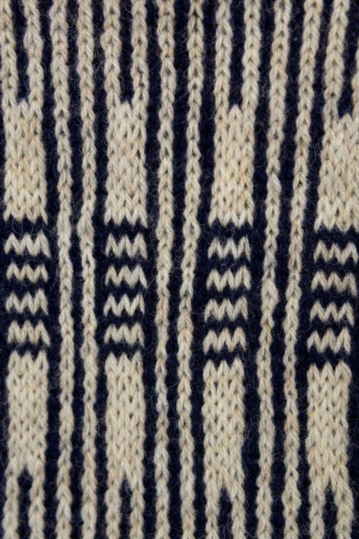 Modellen på billedet er strikket i bundfarve 6s og mønsterfarve 100.
