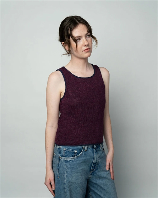 Asunden Top er en smuk sommertop, som er uundværlig til sommerens varme dage. Toppen strikkes i Silk Linen, som er dejligt køligt om sommeren, mens kanterne i en matchende kontrastfarve strikkes i Cotton Merino fra Knitting for Olive.