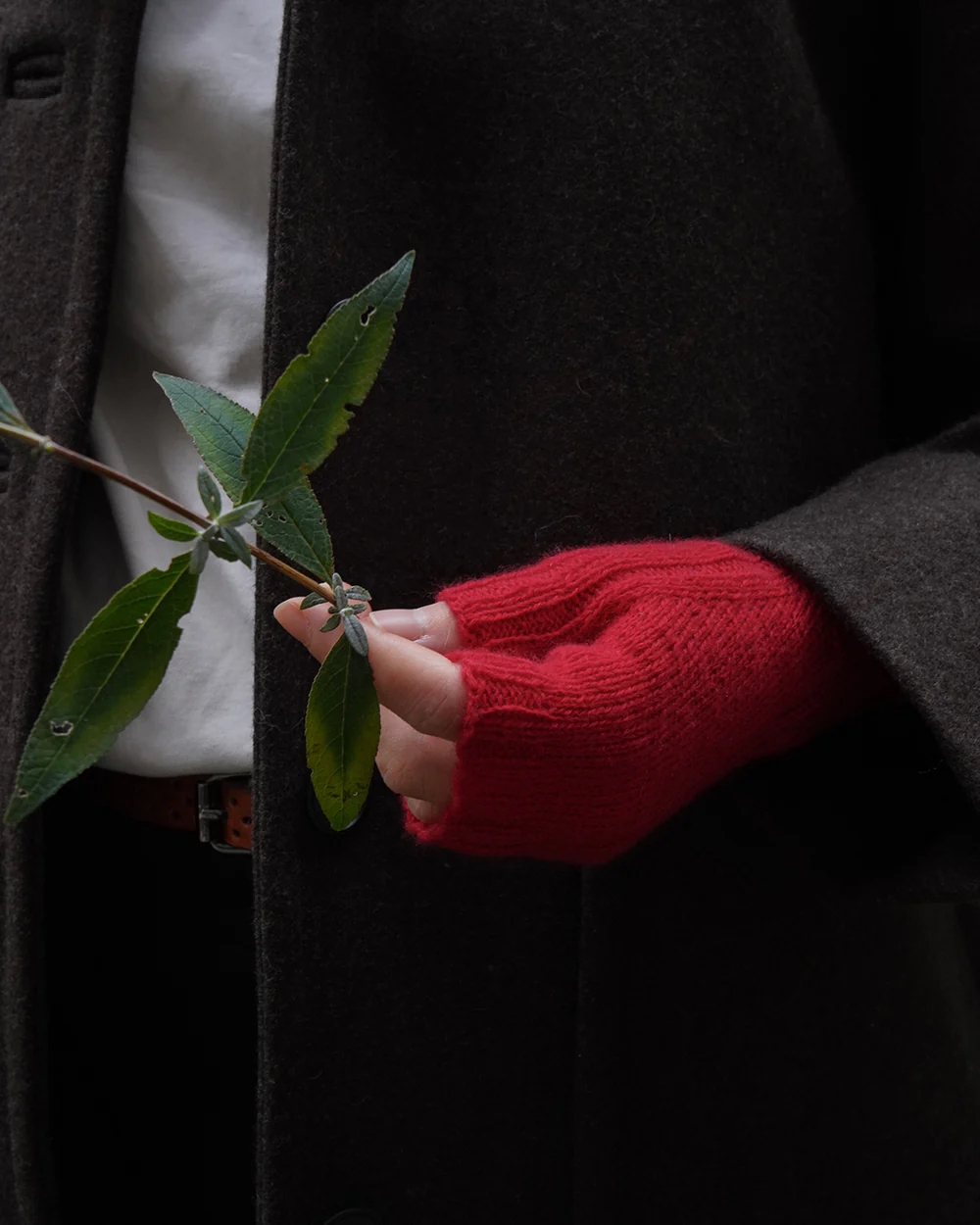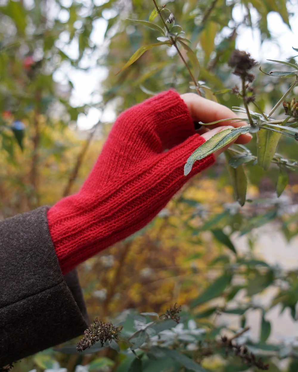 Borgan Halvvanter strikkes fra håndleddet og op i glatstrik med detaljer i rib.