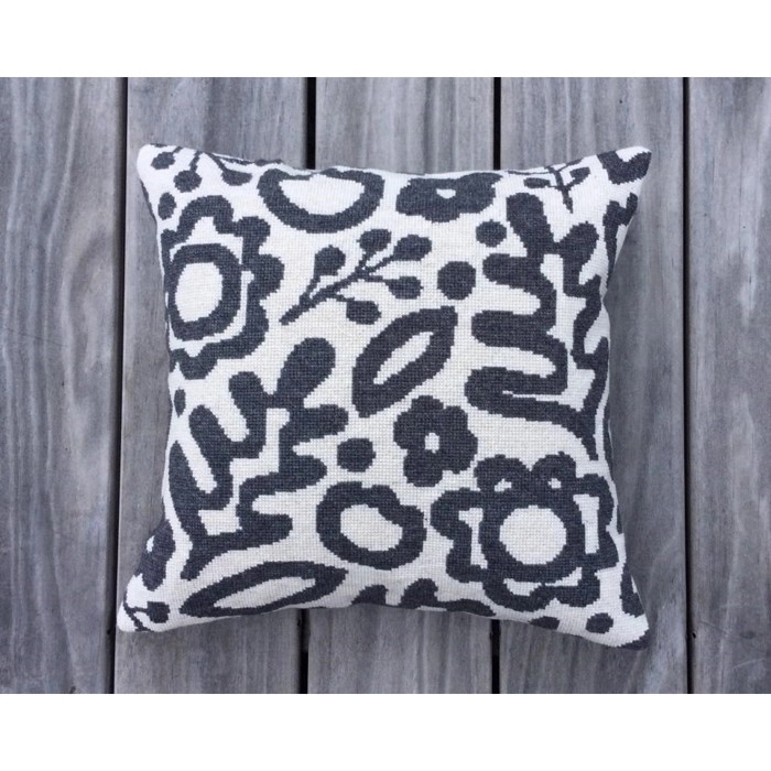 Botanik puden syes med hele korssting på stramaj med 1 tråd uldgarn.
