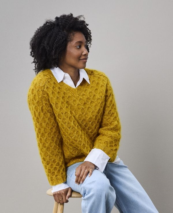 Der er brugt garnkvaliteter fra Isager, som hver især bidrager til trøjernes særlige udtryk og karakter.