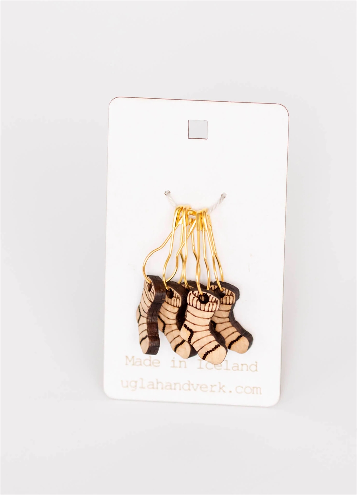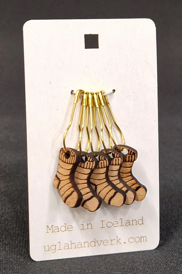 Fine maskemarkører i træ produceret i Island. På hvert kort sidder 5 maskemarkører. Disse har en sød islandsk sok hængende.