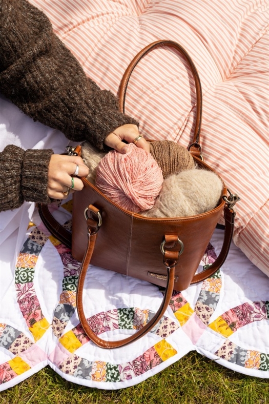 Smuk skuldertaske, designet til at opbevare dit strikke- eller hækleprojekt, så du nemt kan have det med på farten. Og samtidig se godt ud!