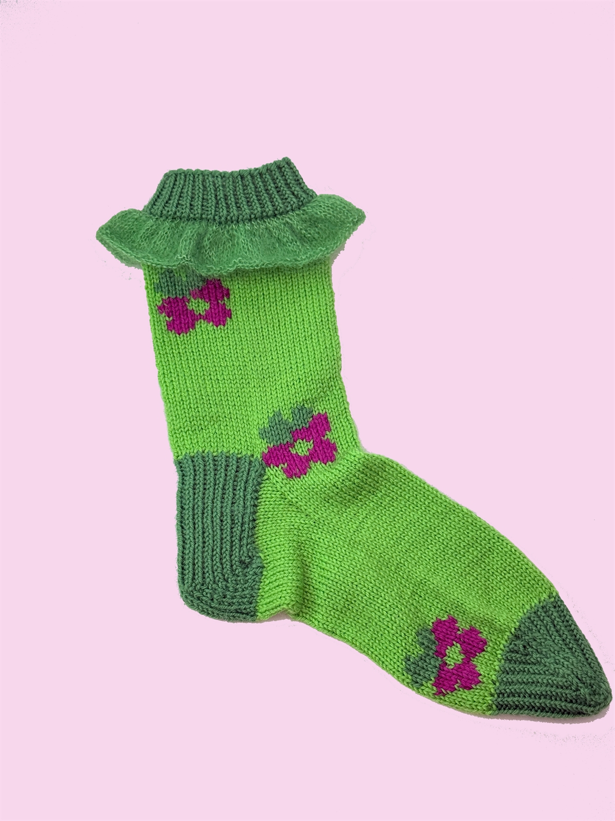 på, at det unikke er smukt. Denne strømpe er designet af Sarah, som har Downs syndrom. Hun er