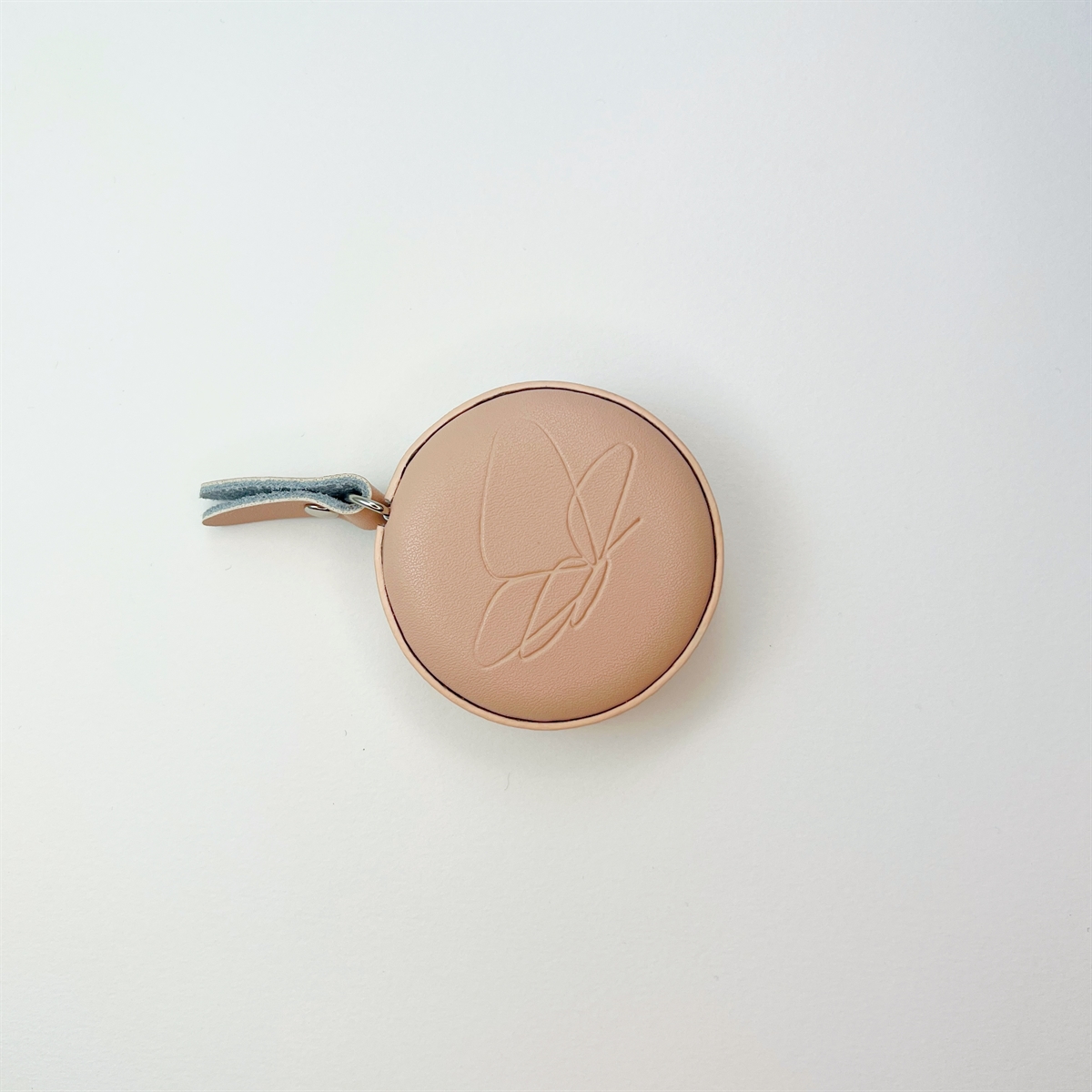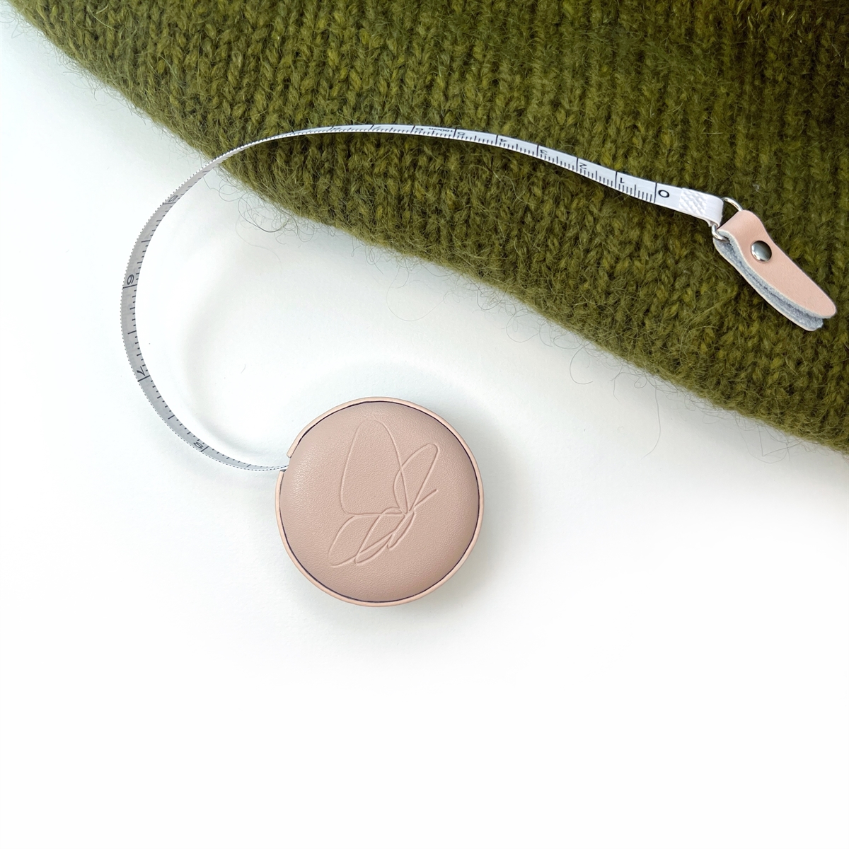 Vores helt eget og meget fine målebånd i lyst, lidt grovere læder og vores logo præget på den ene side. En stor læderflap for enden af målebåndet gør det nemt at trække det ud, og en usynlig knap i midten trækker nemt båndet tilbage.